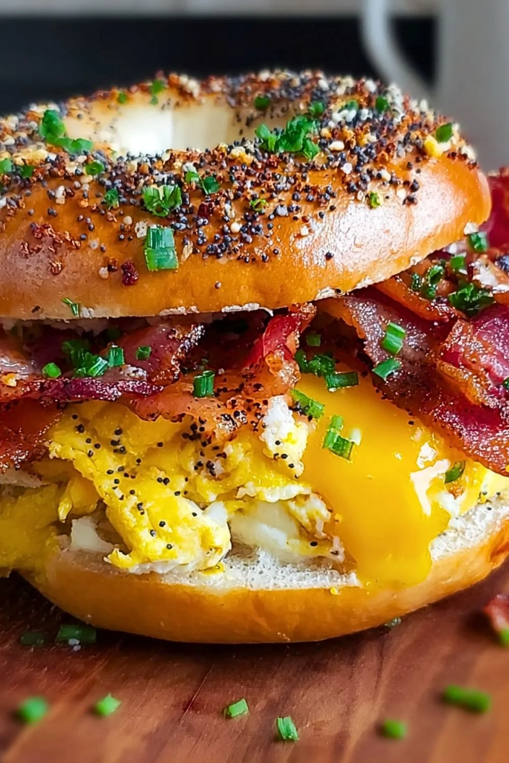 Imagine biting into a toasted everything bagel layered with creamy scrambled eggs, crispy bacon, and melted cheddar cheese—all perfectly balanced between crunchy and gooey. The …