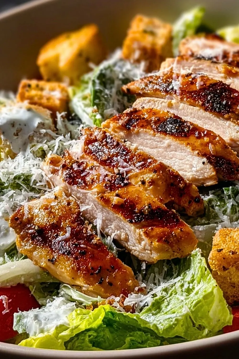 Juicy, flavorful grilled chicken layered over a crisp bed of romaine lettuce, crunchy golden croutons, freshly shaved Parmesan, and a generous drizzle of creamy Caesar …