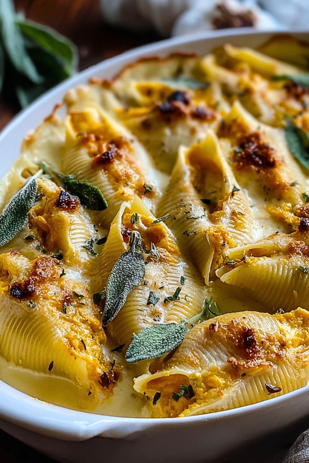 Pumpkin Gouda Stuffed Shells With Brown Butter Sage Alfredo Sauce