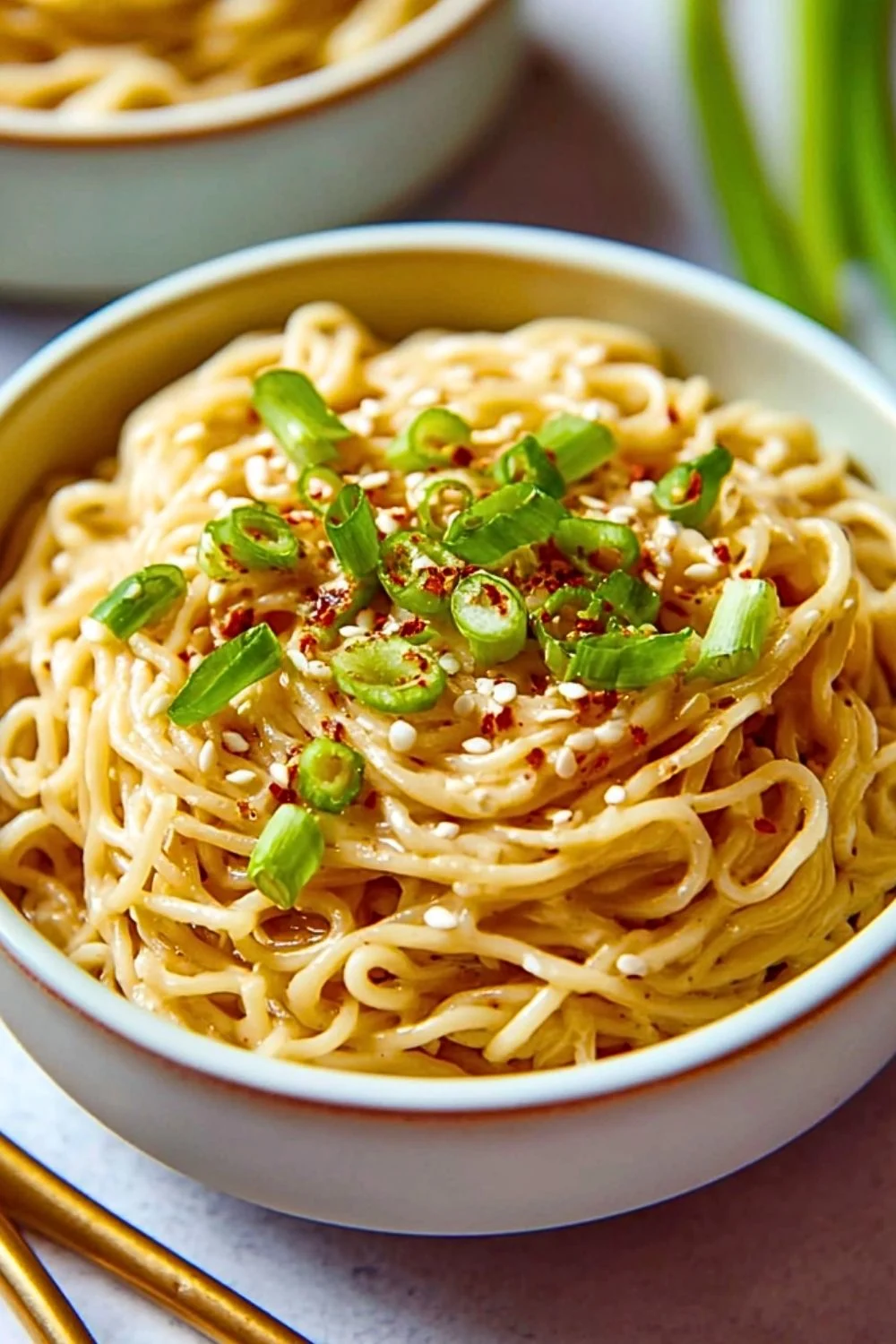 Nothing says comfort quite like a cold bowl of creamy noodles on a lazy day, especially when you're still in pajamas. This recipe—aptly named Cool, Creamy, and the Best Thing to Eat in Pajamas—is the perfect blend of cozy and refreshing. The chilled noodles are coated in a silky, nutty sesame-peanut sauce and topped with crisp veggies and garnishes that pop with flavor. It’s an ideal quick lunch, make-ahead dinner, or healthy snack that’s perfect for meal prep and pajama days alike. Easy to make, endlessly customizable, and deeply satisfying.