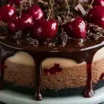Keywords: chocolate cherry cheesecake, elegant dessert, easy baking recipe, cheesecake ideas, cherry topping, oreo crust, holiday cheesecake
