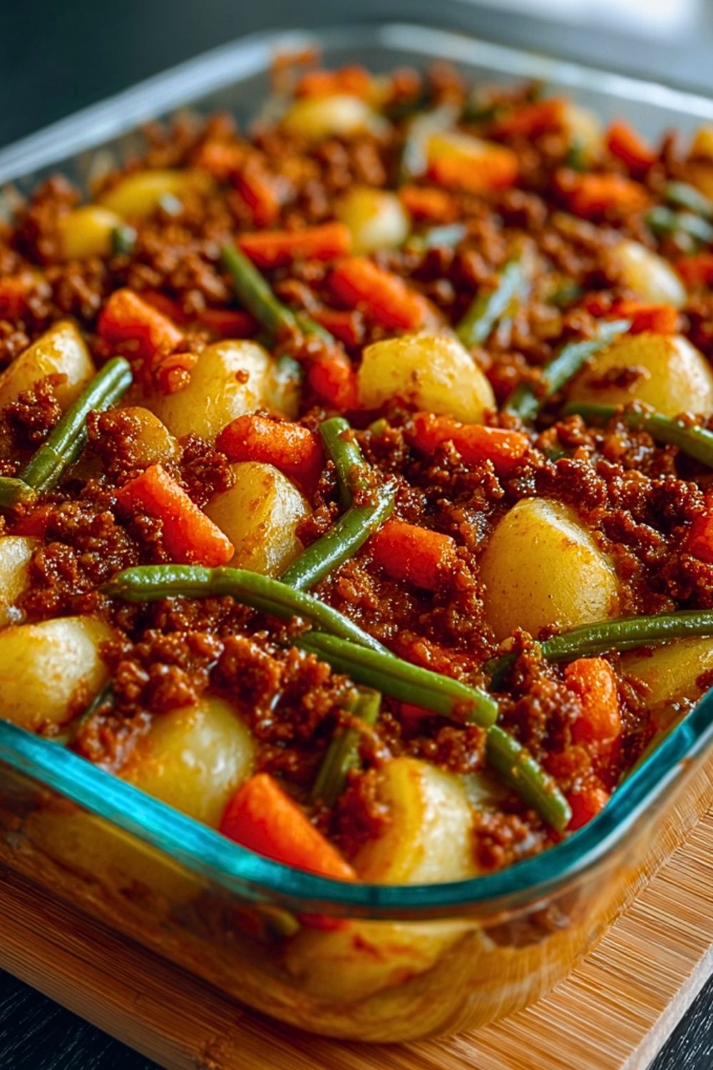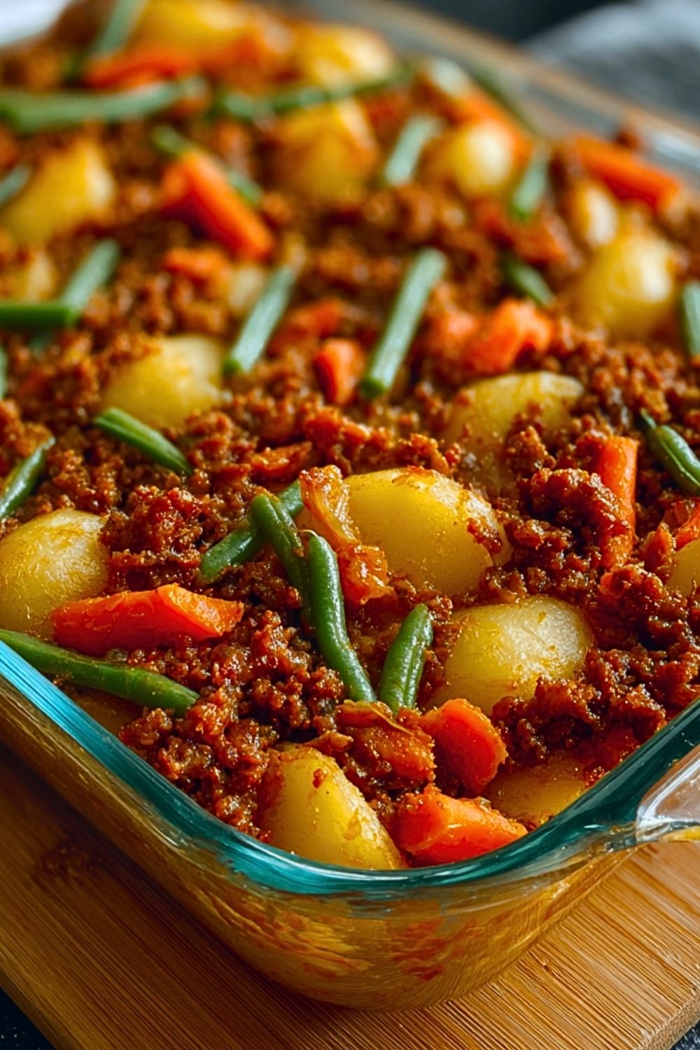 Use waxy or gold potatoes for a tender but firm texture that holds up during baking. Try to cut all vegetables into similar-sized chunks to ensure even cooking throughout. Browning the ground beef until it’s slightly crispy adds depth to the flavor—don’t rush this step. Drain excess grease before combining with the rest of the ingredients to prevent the dish from becoming too oily. Finally, taste your seasoning before baking and adjust salt and pepper if needed—once it’s in the oven, the flavors are locked in!