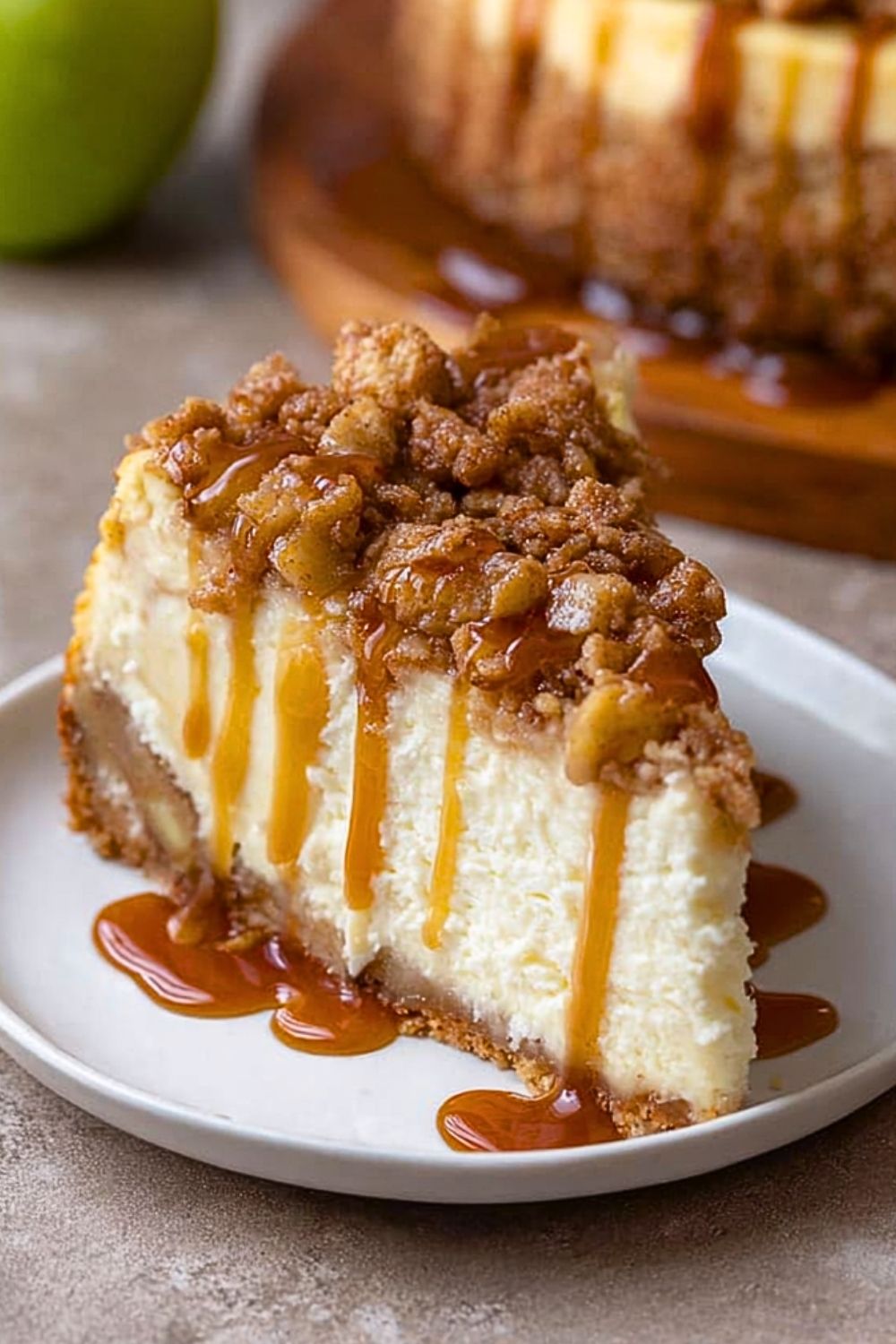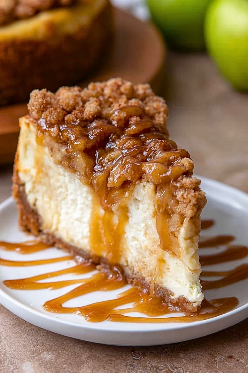 I love how it captures the soul of apple pie while still delivering that indulgent, smooth texture you only get from cheesecake. The balance of tangy cream cheese, sweet caramel drizzle, and a crunchy topping makes each bite unforgettable. Whether you're making it for a holiday or just because, this dessert earns its spot at the center of any dessert table.