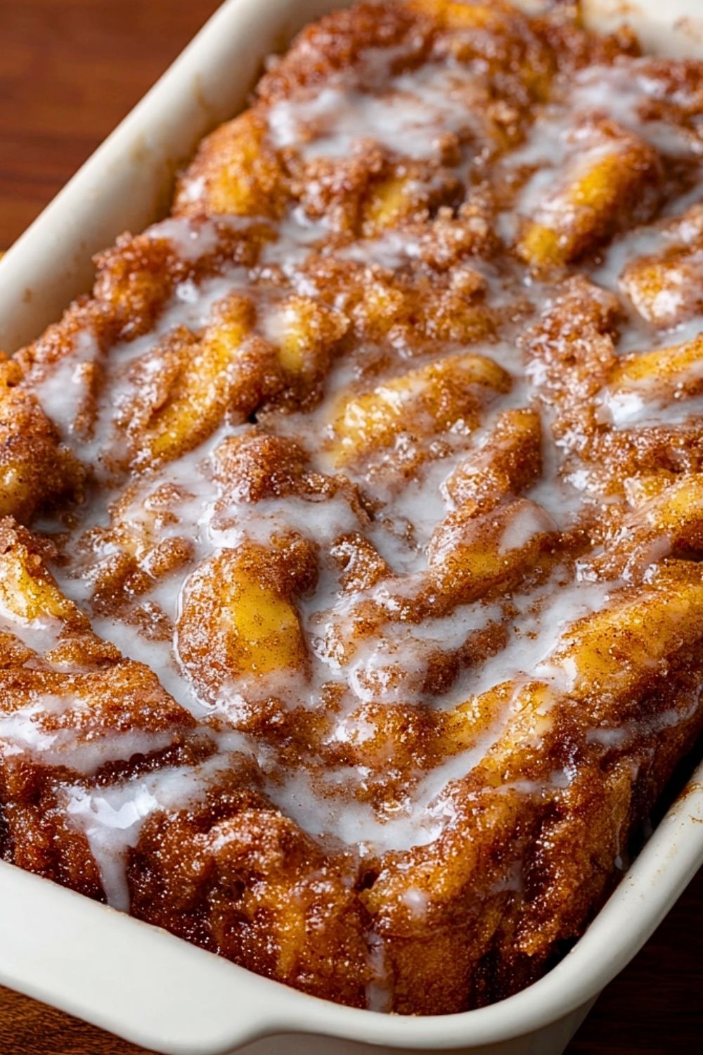 Once the cake has finished baking, remove it from the oven and let it cool for about 10-15 minutes. Drizzle the glaze generously over the warm cake. Serve slices warm or at room temperature for maximum enjoyment.