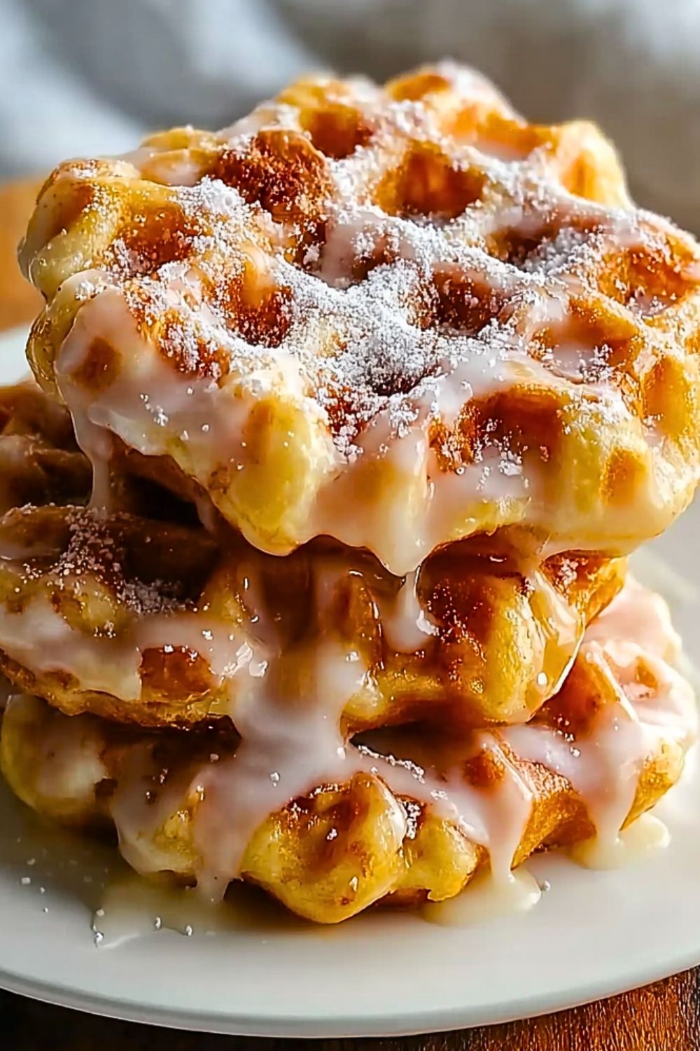 Golden, crispy, and bursting with spiced apple flavor, these Apple Fritter Waffle Donuts are the perfect mashup of a breakfast favorite and a cozy fall treat. Made in a waffle iron, they skip the deep-frying but keep all the comforting flavor of traditional apple fritters. Finished with a vanilla glaze or powdered sugar, they’re a quick breakfast, an easy recipe for lazy weekends, or a sweet brunch centerpiece. Whether you’re craving breakfast ideas or fun food ideas for guests, this recipe hits the sweet spot between indulgent and simple.