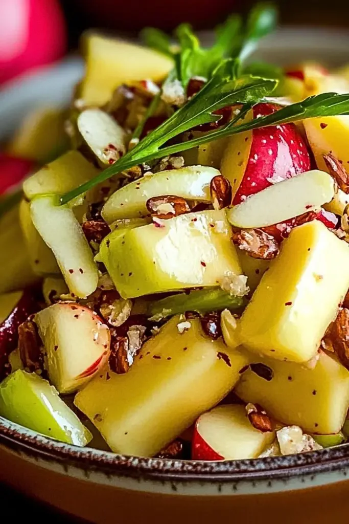 Crisp, refreshing, and beautifully vibrant, Apple Salad is a celebration of texture and natural sweetness. With a medley of tart green apples, crunchy celery, buttery pecans, chewy dried cranberries, and just the right amount of zesty zing, this salad is as nutritious as it is satisfying. Each bite bursts with a contrast of flavors—crunchy and soft, sweet and savory, fresh and earthy.