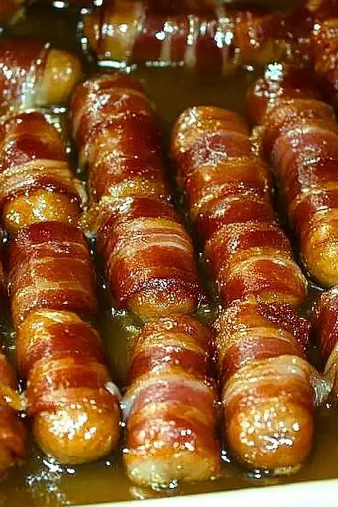 These mini smoked sausages are the heart of the dish—packed with flavor and the perfect size for snacking. Their smoky taste pairs beautifully with the sweet and savory glaze. - Bacon