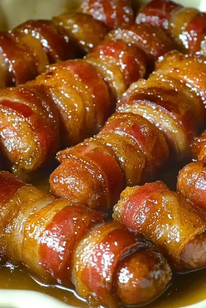 Bacon-Wrapped Smokies with Brown Sugar and Butter