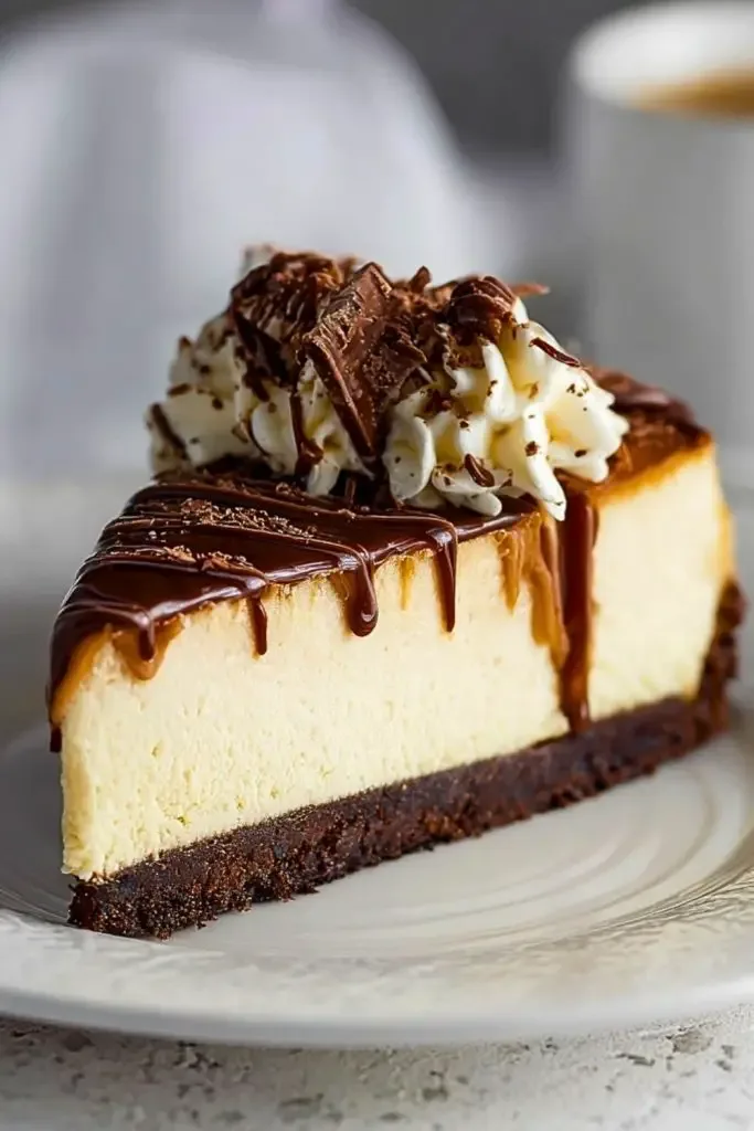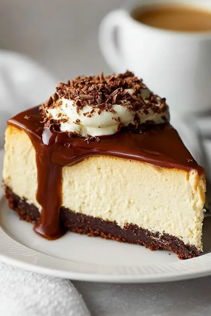 This cheesecake is divine on its own, but you can elevate it with toppings like whipped cream, fresh berries, chocolate shavings, or a drizzle of caramel sauce. A cup of coffee or espresso makes the perfect pairing.