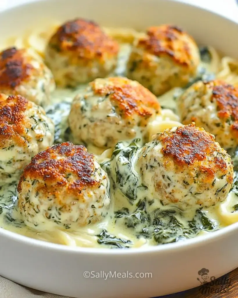 The cooking time for this dish is quite manageable, taking about 20-25 minutes to bake the meatballs at 375°F (190°C). After baking, you’ll simmer the meatballs in the spinach Alfredo sauce for an additional 5-10 minutes to allow the flavors to meld together. This gives you a total of 30-35 minutes from start to finish, making it a perfect meal for a weeknight or a cozy weekend dinner.