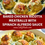 Baked Chicken Ricotta Meatballs with Spinach Alfredo Sauce