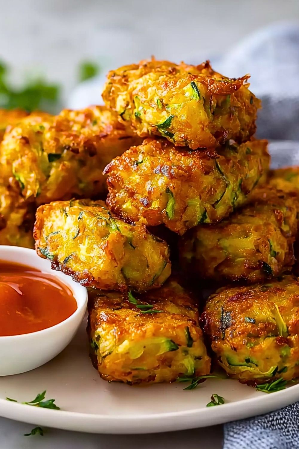 To ensure your tots come out perfectly crisp on the outside and tender in the middle, squeeze out as much water as possible from the zucchini. The drier the mix, the crispier the results. When forming the tots, compact them firmly in your hands to help them hold their shape. If the mixture feels too wet, add a tablespoon of breadcrumbs or oat flour at a time to firm it up. Lastly, don’t overcrowd the baking sheet — give each tot a little space so they can brown nicely.