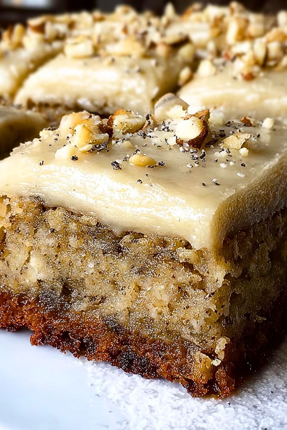 - Sprinkle walnuts on top right after spreading the frosting so they stick well.
