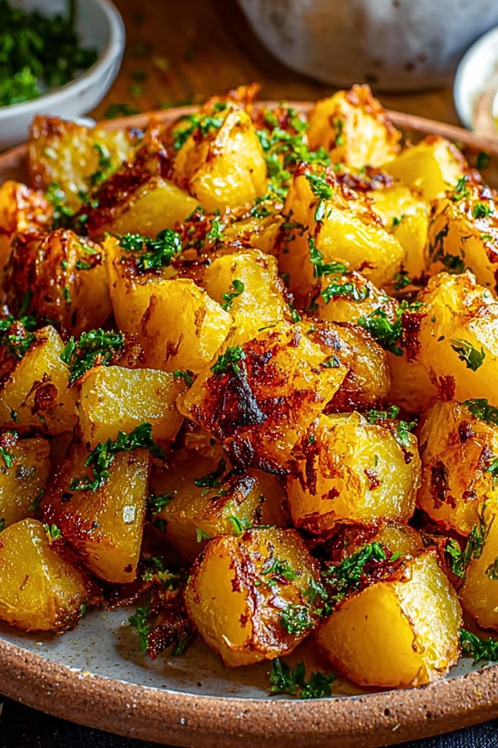 • Fresh Garlic – Brings sharp, aromatic depth. Use plenty and mince it finely so it coats the potatoes evenly.