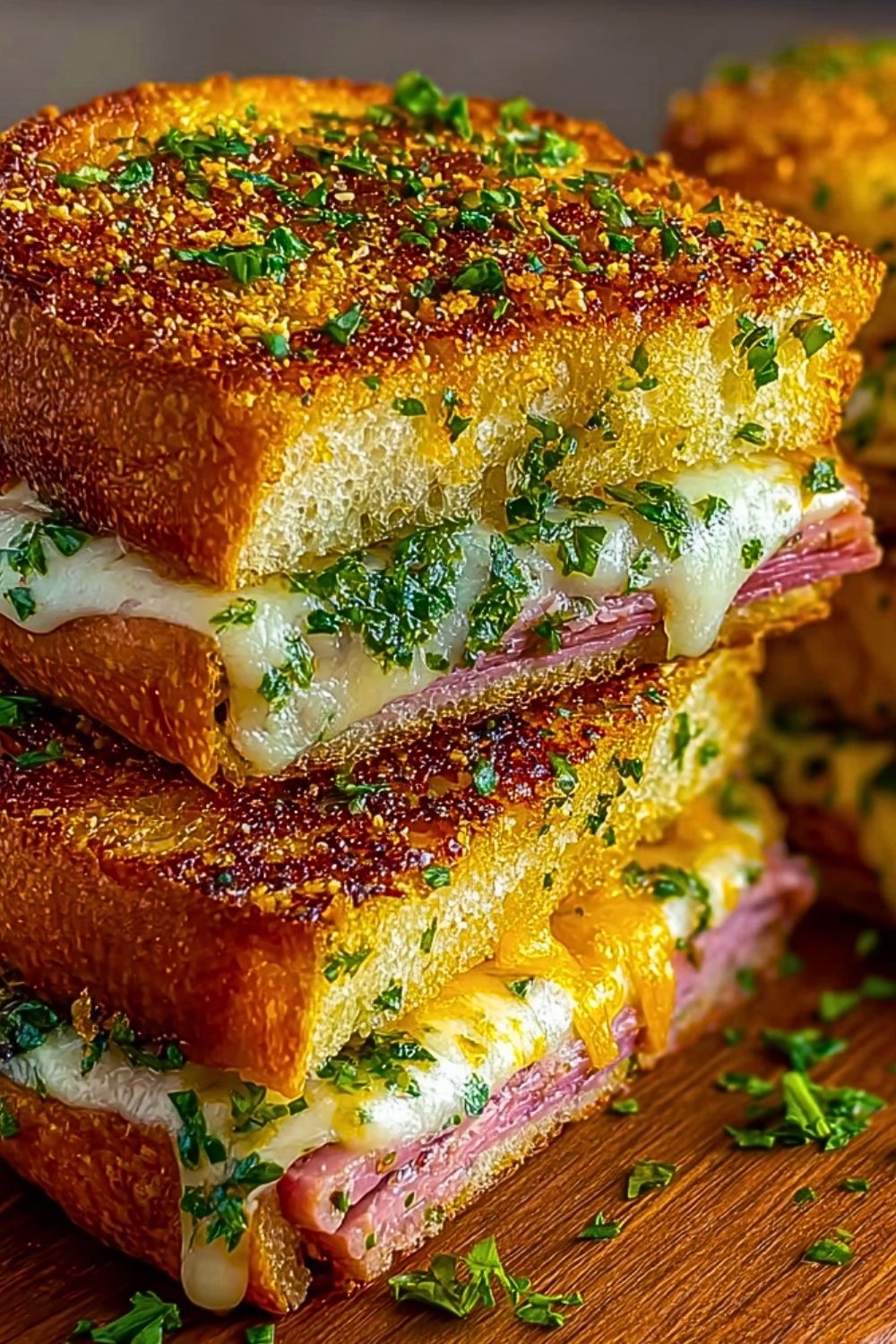 The bold flavor comes from a combination of fresh garlic, finely chopped parsley, and rich butter—smeared generously on the outer sides of rustic bread. Inside, you’ll find layers of ham (or prosciutto), gooey melted mozzarella and Swiss cheeses, and the perfect touch of seasoning. Perfect for a quick lunch, a cozy dinner, or a hearty snack, these sandwiches strike a mouthwatering balance between crisp and creamy, salty and savory.