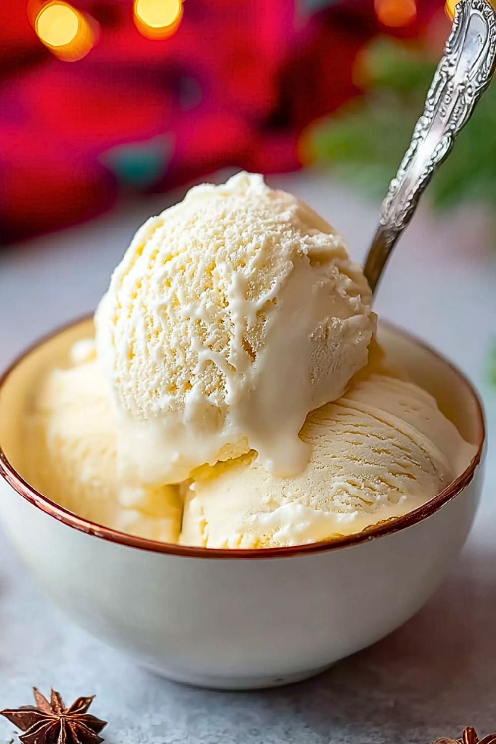What makes this ice cream irresistible is its velvety custard base, infused with warming notes of nutmeg and a gentle kick of booze. Every spoonful tastes like Christmas in frozen form. If you love eggnog, you’ll fall head over heels for this dreamy dessert. It’s sweet, subtly spiced, and melts slowly on the tongue, leaving behind hints of vanilla and bourbon in its wake.