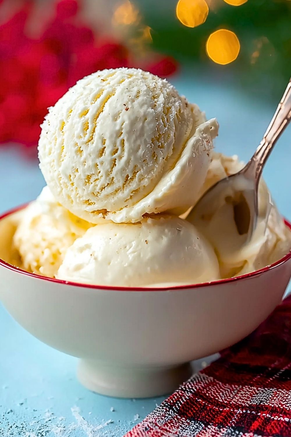 Keywords: boozy ice cream, eggnog dessert, holiday ice cream, easy Christmas dessert, frozen eggnog, quick dessert idea