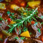 Nothing warms the soul quite like a hearty bowl of Braised Vegetable Beef Soup. This comforting one-pot dish combines tender chunks of beef, rustic vegetables, and an herby, tomato-rich broth that’s been slow-braised to perfection. Ideal for cold nights, lazy Sundays, or make-ahead meal prep, it’s a satisfying mix of flavor and nourishment. Whether you’re searching for easy dinner ideas, a quick prep comfort meal, or a freezer-friendly option, this easy recipe will become one of your go-to food ideas. Great for weeknight dinners, cozy weekends, or a hearty lunch, this soup is a delicious addition to your collection of healthy snacks or dinner ideas.