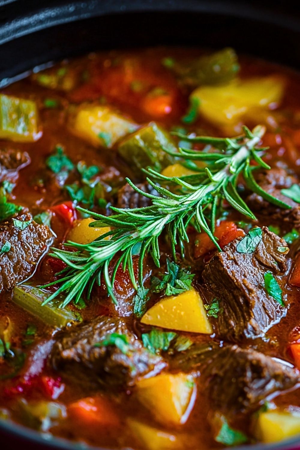 • Canned diced tomatoes – Brings acidity and richness, balancing the meat and vegetables.