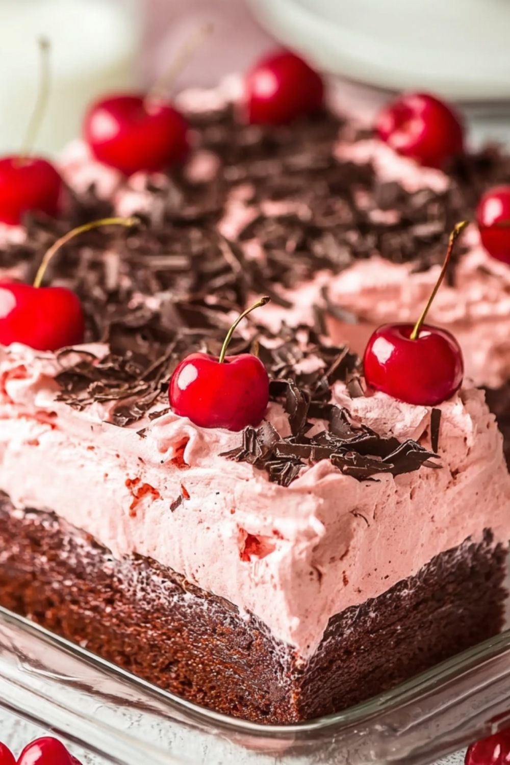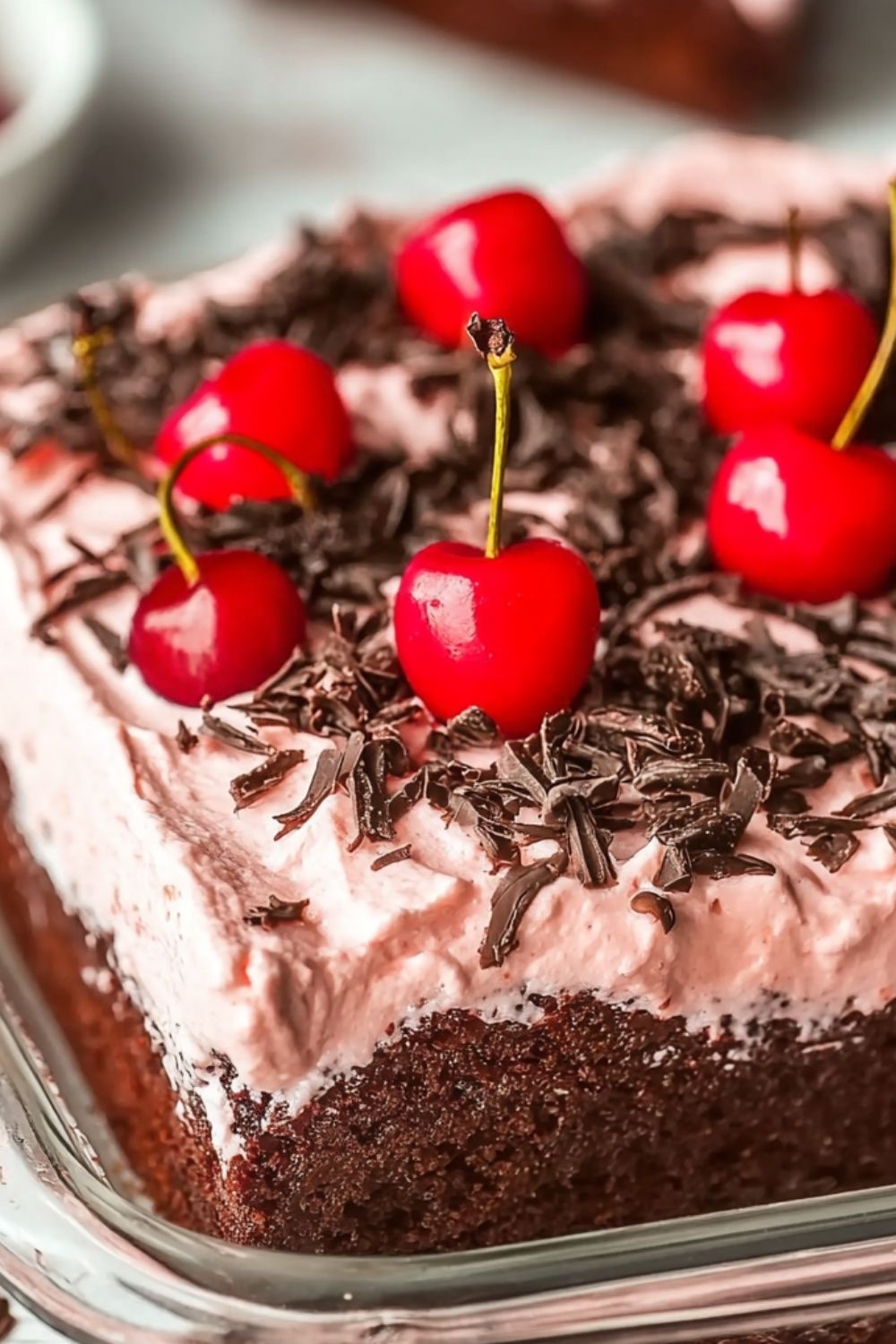 This recipe was born out of a craving for something indulgent, fruity, and just a little bit unexpected. The cherries bring a fresh, tart pop that balances the decadence of the chocolate perfectly, while the creamy pink topping adds a whimsical flair. And the twist? Let’s just say it adds that extra sparkle—literally and flavorfully. Whether you’re making it for a birthday, a dinner party, or just because your sweet tooth said so, this cake won’t disappoint.