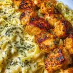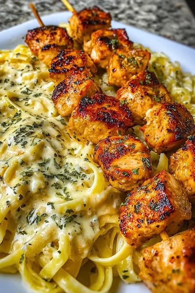 Juicy, flame-kissed chunks of Cajun-spiced chicken, seared until golden and slathered in a rich garlic butter glaze—served next to a bed of silky linguine bathed in a dreamy, creamy parmesan sauce. This dish strikes the perfect balance of bold spice and indulgent comfort. It’s the kind of meal that makes you pause after every bite, savoring the layers of flavor that unfold in perfect harmony.