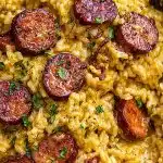 What makes Cajun Sausage & Rice stand out is the balance of textures and spice. The smokiness of the sausage pairs beautifully with the creamy rice, while Cajun seasoning brings a kick that’s not overpowering but undeniably bold. It’s a recipe that feels indulgent yet simple to make, and once you try it, it’s likely to become a regular in your meal rotation.