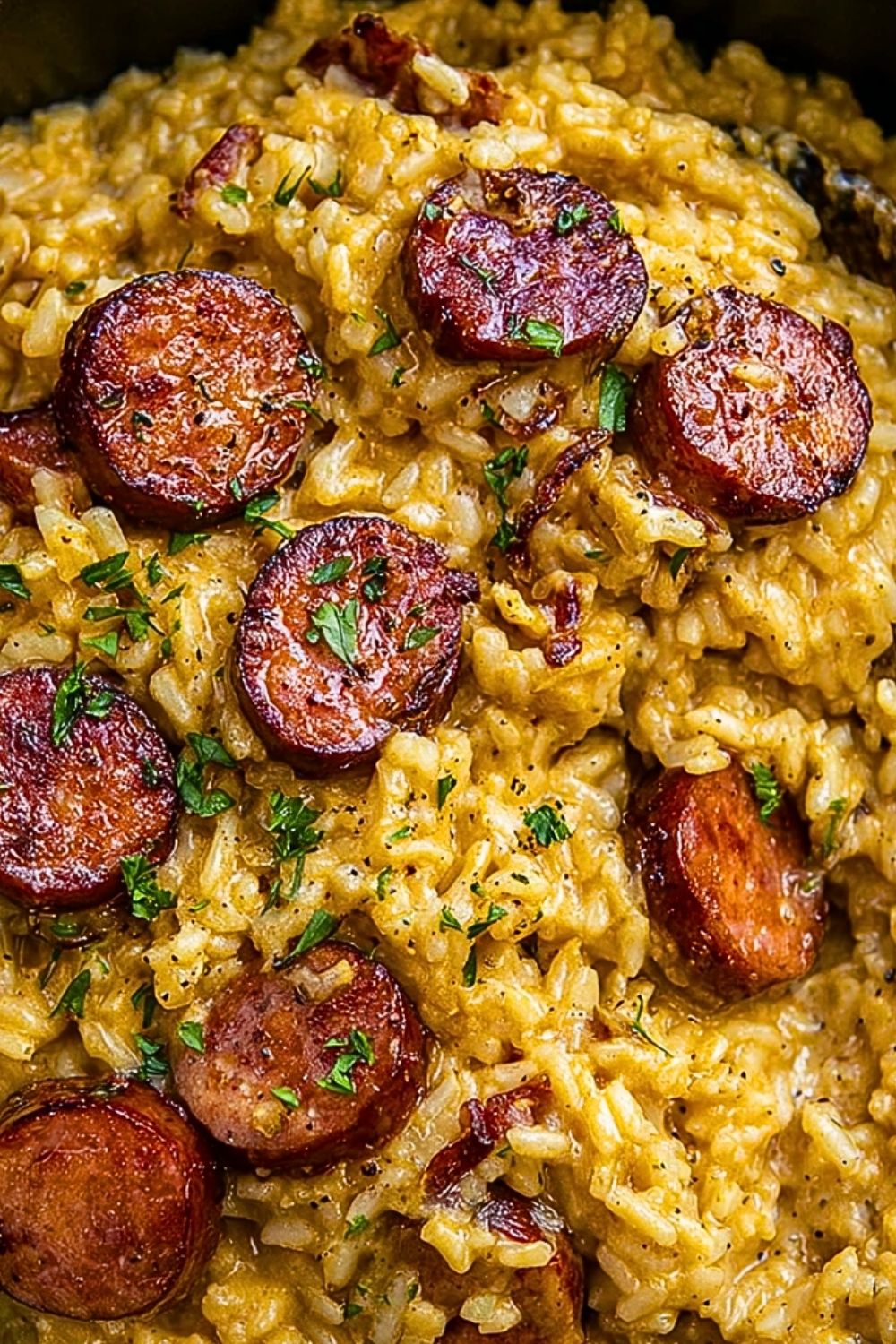 Keywords: easy dinner, creamy rice, sausage and rice, Cajun food, one-pan meal