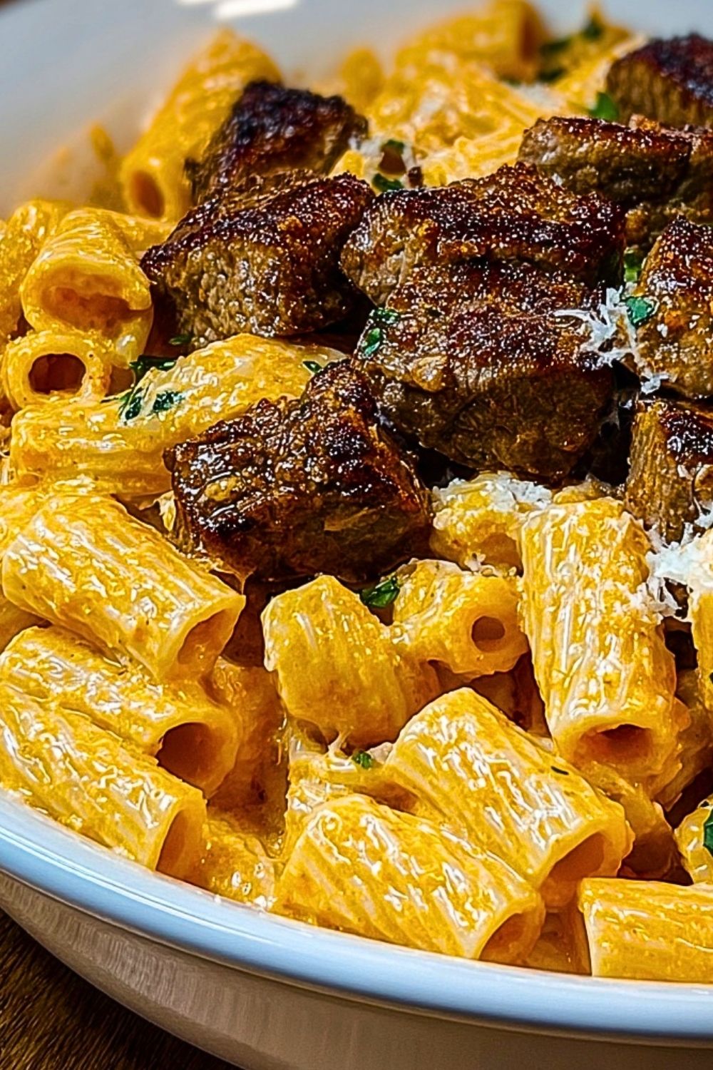 Keywords: Cajun pasta, cheesy rigatoni, steak pasta, creamy parmesan, easy dinner