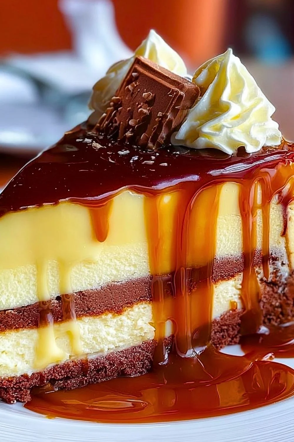 Indulgent, creamy, and laced with the bold flavors of espresso and caramel, Caramel Macchiato Cheesecake is a dessert that tastes as luxurious as it looks. Inspired by the beloved coffeehouse beverage, this cheesecake brings together the deep, roasted richness of coffee with the buttery sweetness of caramel, all layered on a crisp, buttery graham cracker crust. Each slice is a delightful contrast of flavors and textures — smooth and dense cheesecake filling, airy whipped topping, and a decadent caramel drizzle.