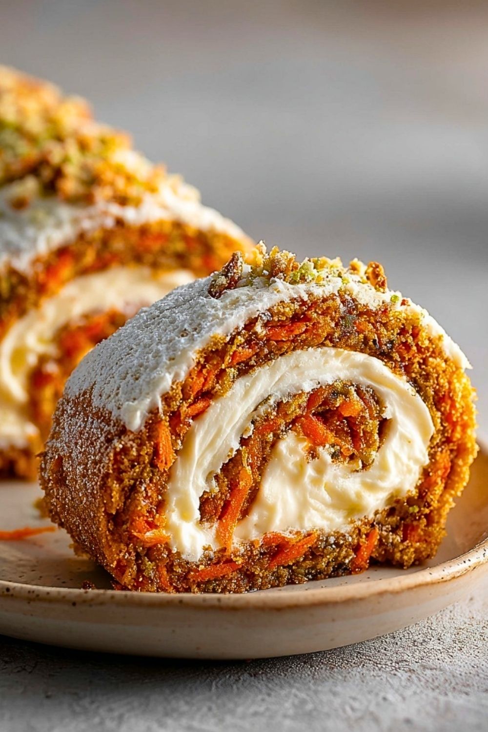 This Carrot Cake Roll is a beautiful blend of moist spiced cake and rich, tangy cream cheese filling. For best results, always use fresh, finely grated carrots—not pre-shredded store-bought ones—as they contain more moisture and better flavor. If you prefer a less sweet filling, reduce the powdered sugar slightly in the frosting. The cake can be made a day ahead, making it a convenient dessert for gatherings or holidays.