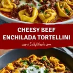 Keywords: cheesy beef tortellini, enchilada pasta, quick dinner, easy recipe, dinner ideas, beef pasta, one-skillet meal