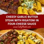 Cheesy Garlic Butter Steak with Rigatoni in Four-Cheese Sauce