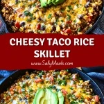 Keywords: cheesy taco rice skillet, one pan dinner, easy dinner, weeknight meal, tex mex skillet