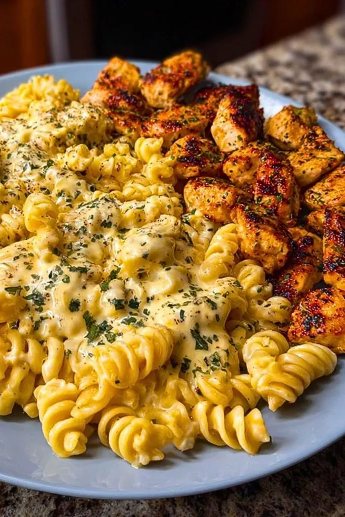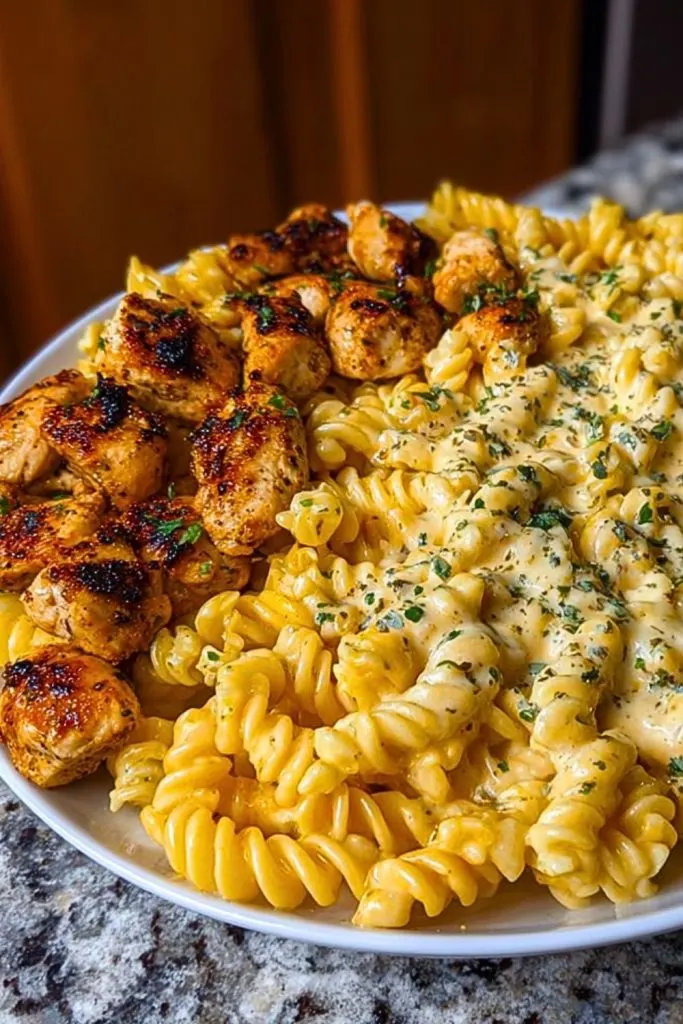 What I love most about this dish is how it balances comfort and flavor. The Velveeta gives the pasta that signature creamy texture, while the mozzarella adds stringy, gooey richness on top. Then there’s the garlic herb sauce that ties everything together—and don’t even get me started on the seared chicken. It’s well-seasoned, slightly crispy on the outside, and juicy on the inside, making every bite totally satisfying. Whether you're cooking for your family or trying to impress some guests, this one is a guaranteed hit.