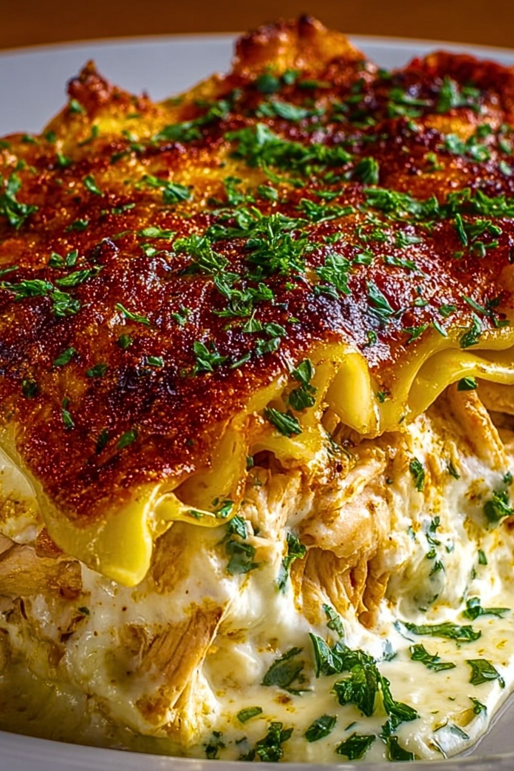This dish is a delightful twist on the classic beef lasagna, offering a lighter yet equally hearty alternative. The combination of seasoned chicken, creamy sauce, and herbs creates a balance that’s both comforting and elegant, perfect for family dinners or special gatherings.