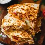 Golden, crispy tortillas filled with melty cheese, juicy chicken, and sautéed peppers make chicken quesadillas a delicious and easy meal. Whether you enjoy them as a quick snack, lunch, or dinner, they’re packed with flavor and perfectly customizable with your favorite ingredients. Serve with sour cream, guacamole, or salsa for a tasty experience!