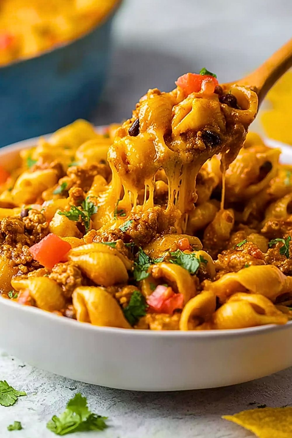 I usually reach for medium pasta shells because they trap the sauce and fillings in every bite, but you can definitely experiment. Penne, rotini, or even elbow macaroni work well. The key is using a pasta that can hold its shape and absorb the creamy taco-spiced sauce. Avoid thin noodles like angel hair—they just won’t carry the same richness.