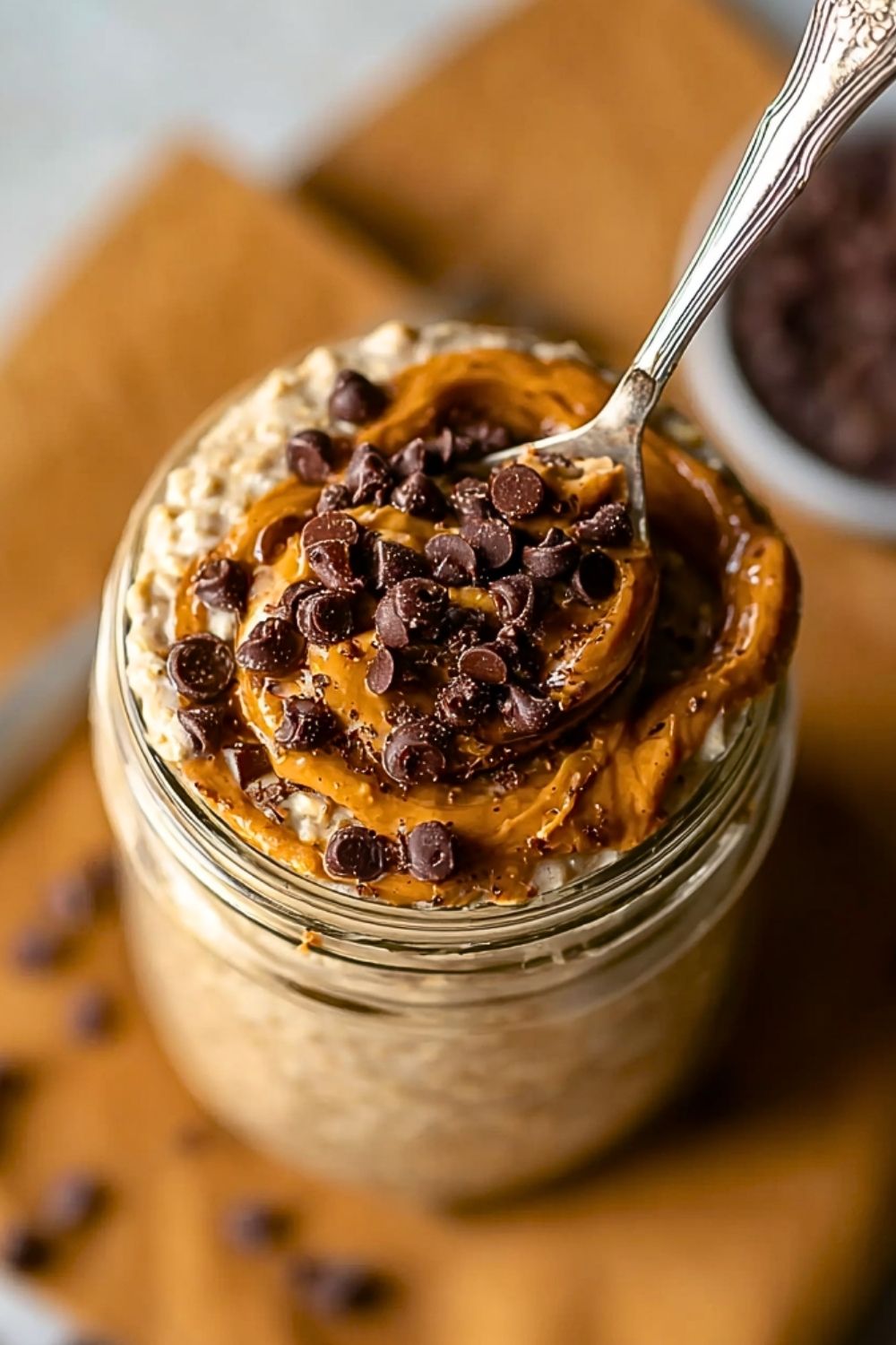 In the morning, give the oats a good stir. If it’s too thick, add a splash more milk. Top with a little extra peanut butter and a sprinkle of chocolate chips if you want that picture-perfect finish.
