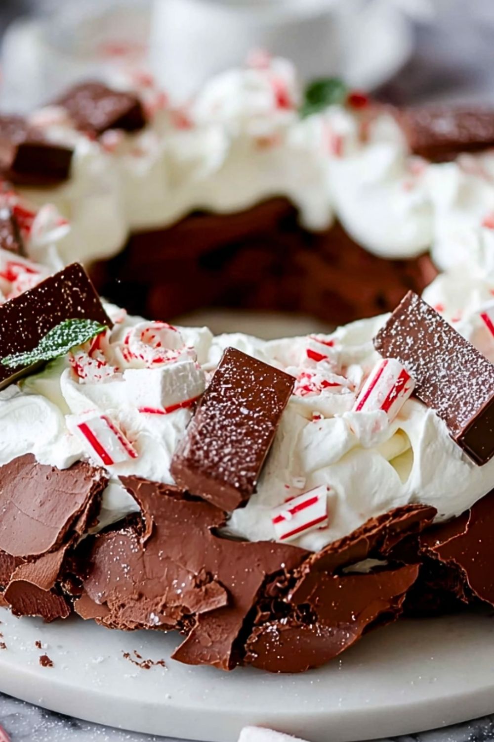 Chocolate Peppermint Christmas Pavlova Wreath Dessert