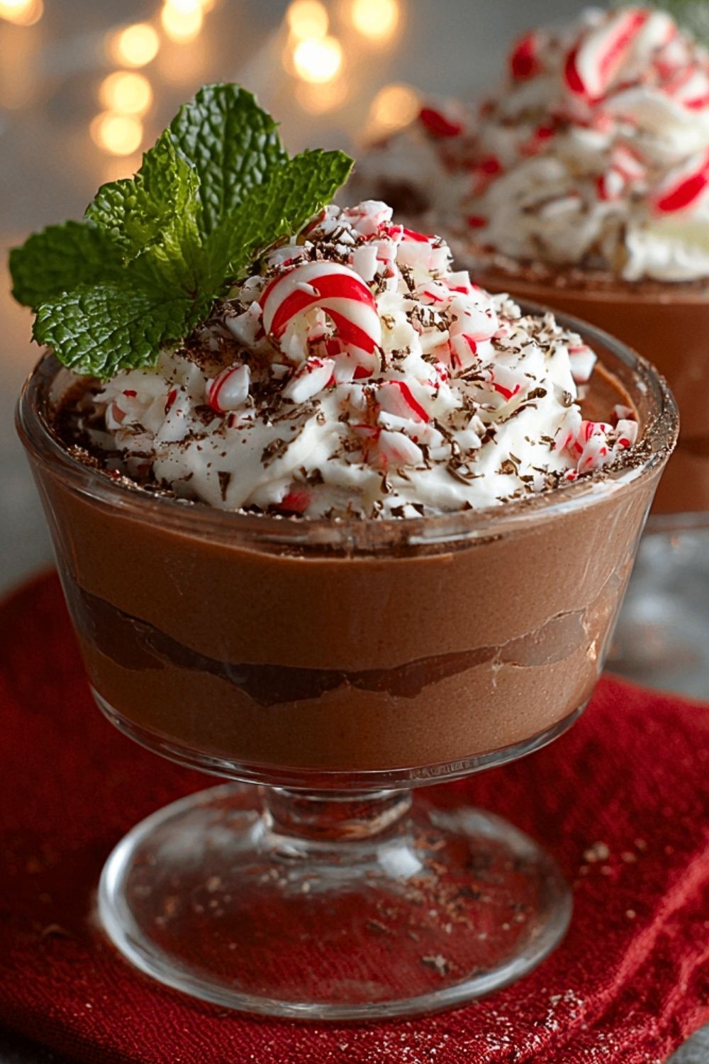 Keywords: holiday dessert, peppermint mousse, chocolate mousse, Christmas recipe, easy no-bake dessert, dinner party ideas