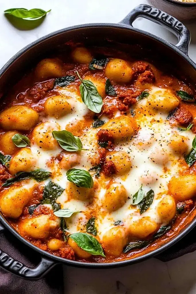 Looking for a bold and comforting dinner idea? This Chorizo Gnocchi with Mozzarella is an easy recipe that packs a punch! Smoky chorizo, pillowy gnocchi, and creamy mozzarella come together in a spicy tomato sauce, all baked to bubbly perfection. Whether you're after a quick weeknight meal or fun new food ideas for guests, this dish delivers on flavor, texture, and simplicity. Ideal for anyone searching for cozy dinner ideas, quick comfort food, or a savory one-pan wonder that satisfies every time.