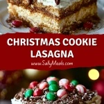 Cover the Christmas Cookie Lasagna tightly with plastic wrap or foil and store in the refrigerator for up to 5 days. For longer storage, place in an airtight container and freeze for up to 1 month. If frozen, thaw in the refrigerator overnight before serving. Avoid leaving the dessert at room temperature for extended periods, as the whipped topping and cream cheese layer can soften too much and affect the structure.