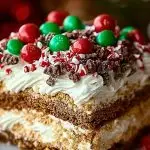 Keywords: Christmas dessert, no-bake recipe, holiday treat, cheesecake lasagna, easy Christmas recipe