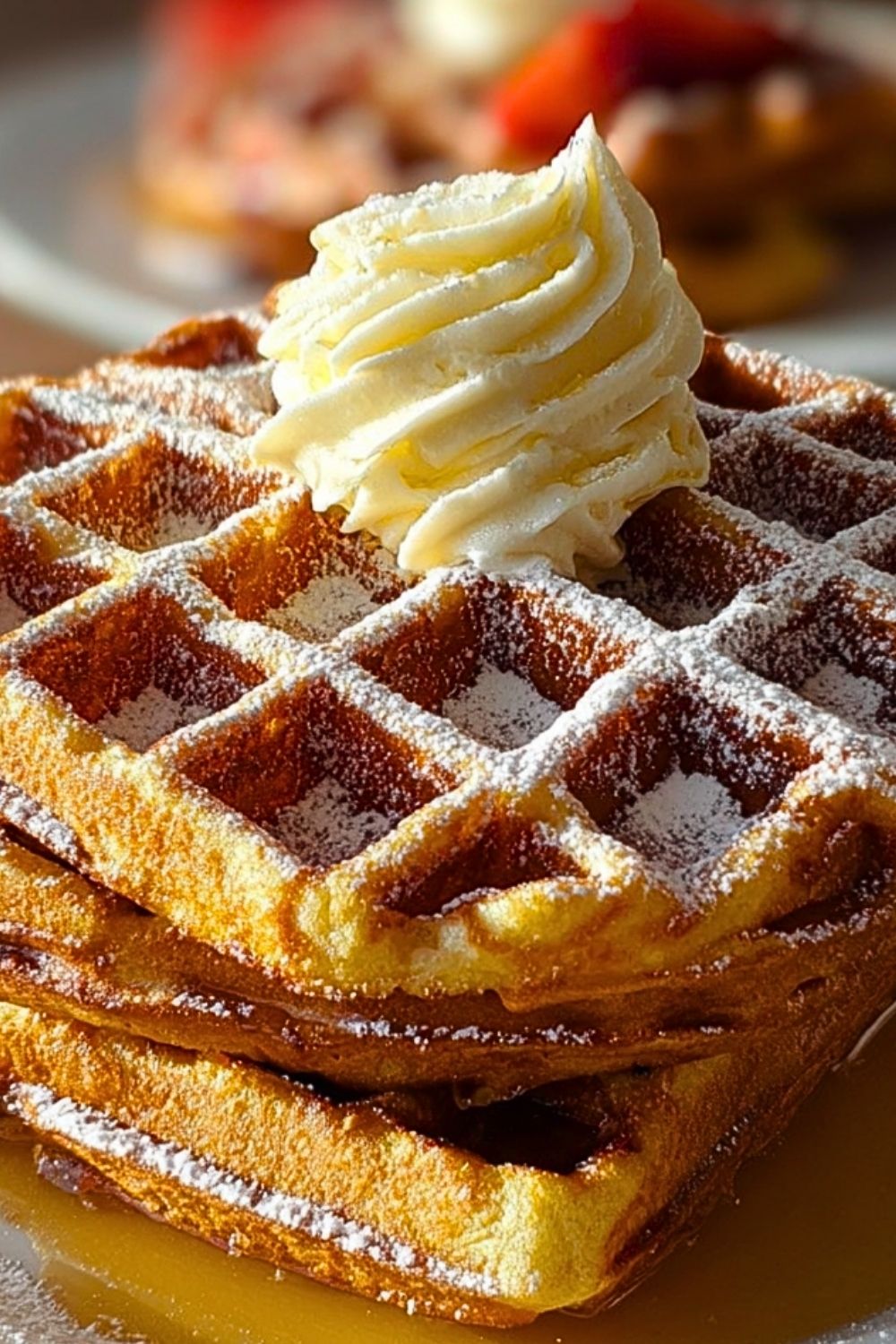 Serve the waffles immediately with your favorite toppings such as whipped cream, maple syrup, or a dusting of powdered sugar. The warmth of the waffles will slightly melt the toppings, creating a deliciously indulgent finish.