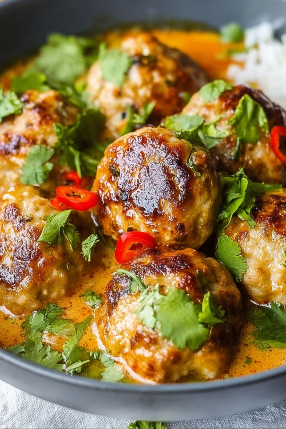 Keywords: coconut chicken meatballs, thai meatballs, creamy curry meatballs, easy dinner recipe, meal prep idea, healthy dinner