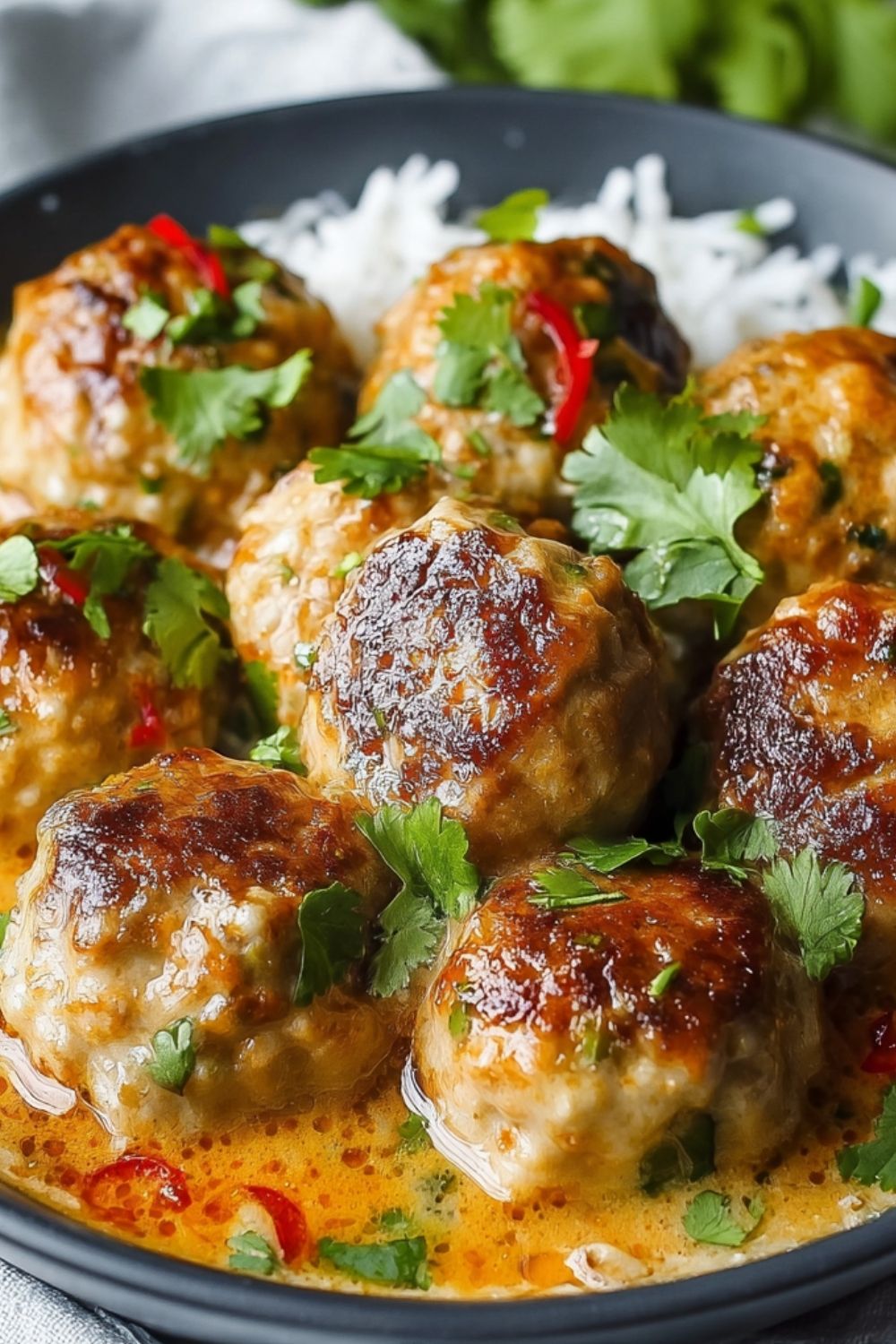 Keywords: coconut chicken meatballs, thai meatballs, creamy curry meatballs, easy dinner recipe, meal prep idea, healthy dinner