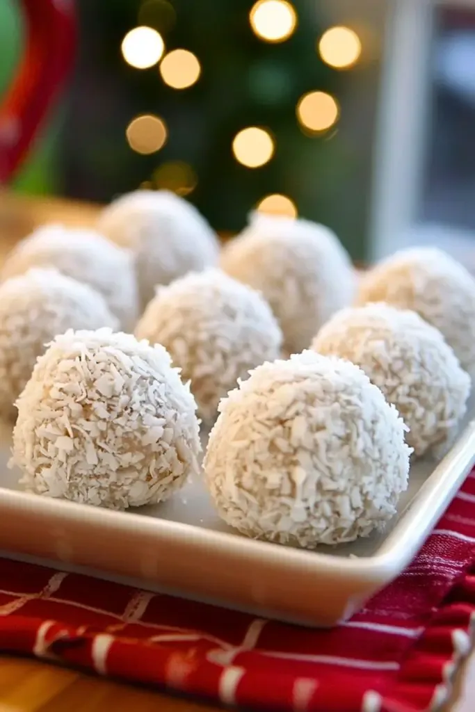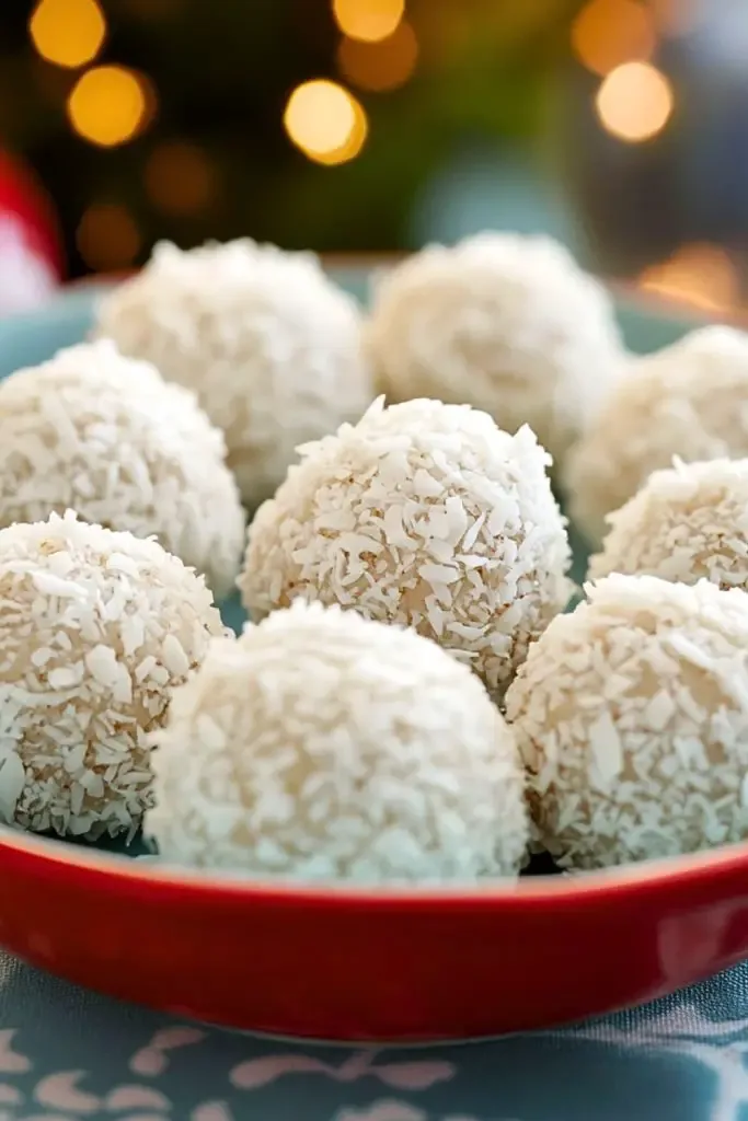 Pour some extra shredded coconut onto a plate and roll each ball in it until completely coated. This gives them that classic snowy appearance and adds another layer of texture.