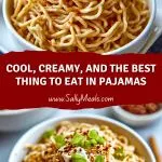 Nothing says comfort quite like a cold bowl of creamy noodles on a lazy day, especially when you're still in pajamas. This recipe—aptly named Cool, Creamy, and the Best Thing to Eat in Pajamas—is the perfect blend of cozy and refreshing. The chilled noodles are coated in a silky, nutty sesame-peanut sauce and topped with crisp veggies and garnishes that pop with flavor. It’s an ideal quick lunch, make-ahead dinner, or healthy snack that’s perfect for meal prep and pajama days alike. Easy to make, endlessly customizable, and deeply satisfying.