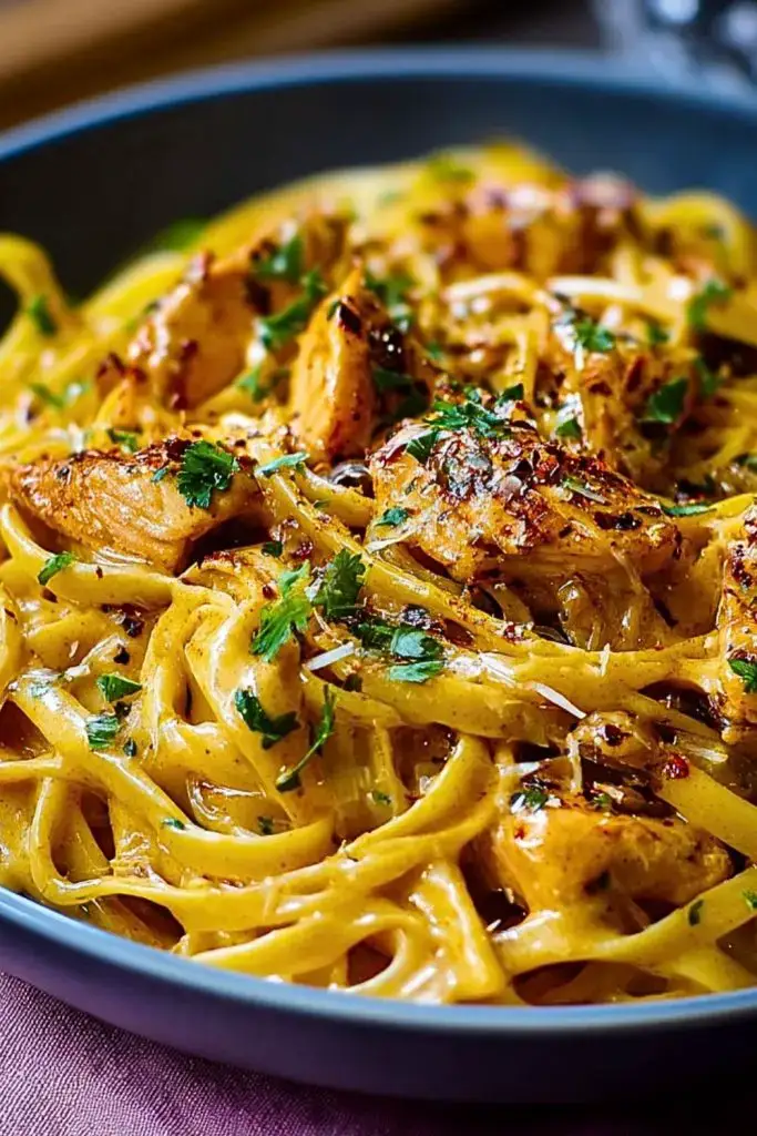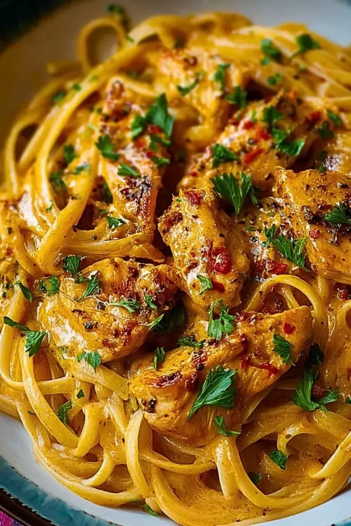 The buttery, garlicky, slightly spicy sauce clings to every strand of linguine and coats the tender chicken pieces in pure magic. It's indulgent without being heavy and exciting without being complicated — the best kind of food.