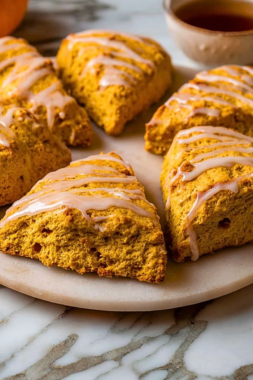 Bake Time: These scones bake in about 18–20 minutes at 400°F. After baking, give them at least 10 minutes to cool before glazing. From start to finish (not counting squash prep), the total time is about 35–40 minutes.